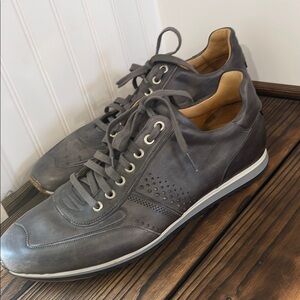 Elevate your casual look with this stylish gray leather fashion sneaker from Magnanni. Featuring a lace-up closure and low-top shoe shaft style, these sneakers are perfect for any occasion. The geometric pattern adds a touch of uniqueness to the design, while the performance features make them ideal for walking. Crafted in Portugal from high-quality leather, these sneakers are a must-have for any fashion-forward man. The Magnanni Cristian model is a great addition to your shoe collection and will complement any outfit