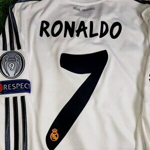 Official Cristiano Ronaldo Real Madrid Home Long Sleeve Jersey from the 2014 UEFA Champions League Final. Real Madrid went on to beat Atletico Madrid at extra time and win their 10th European Title!