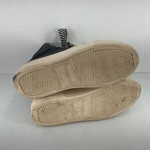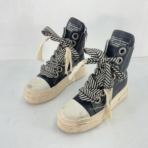 Cristianzerotre Black Leather Hi-Top Sneakers Striped Laces Womens 10.5 Preowned