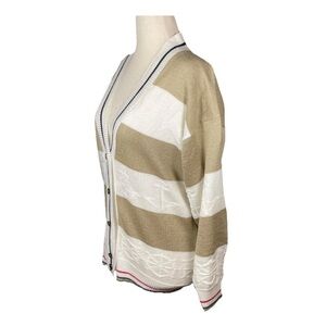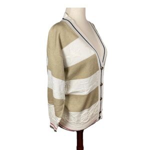 Cristin Stevens Vintage Striped Knit Cardigan Nautical Coastal Anchor Size Large