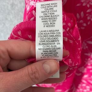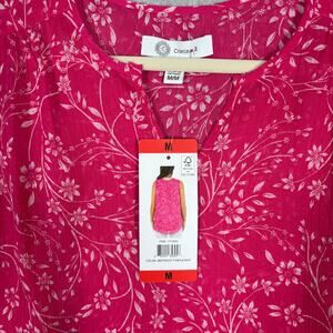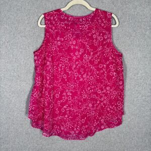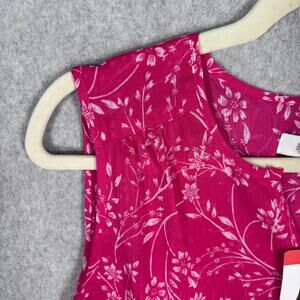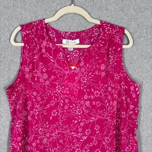 Cristina B Blouse Medium Floral Flowy Sheer Tunic Tank Popover Cottage Pink Chiffon Sleeveless V Neck Corp Career Work Office Business Church Classic Casual Spring Summer Feminine Romantic Mediterranean Beach Vacation Resort Coastal Cruise Ruffle Textured