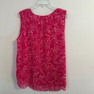Cristina B Sleeveless Lightweight V-Neck Floral Blouse / Tank in Pink & White Size Large V-neckline and subtle ruching at the shoulders Lightweight, breezy fabric Relaxed fit Like-new condition This is a loose size L - could also fit a size XL! Measurements (appx): Length: 28" Bust: 22.5" Ships quickly and with care!