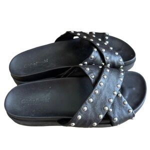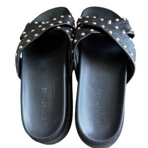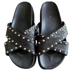 Cristina Francini Black Leather Studded Slide Sandals – Size 8