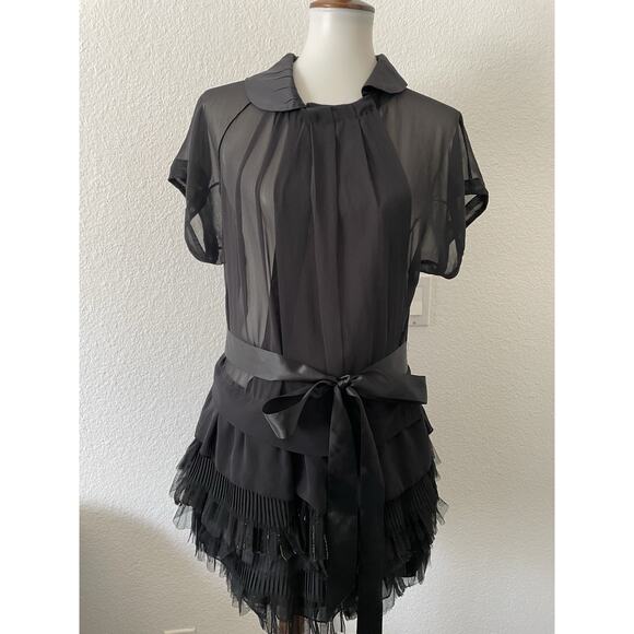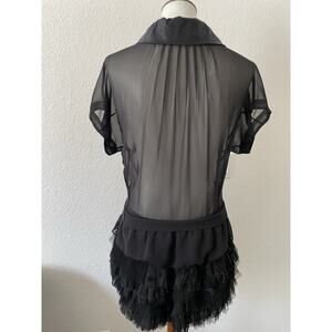 Cristina Gavioli Top Blouse Tiered Ruffled Tie Front Black