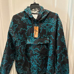 Straight from the mind of contemporary artist Cristina Martinez, this relaxed anorak features a hypnotic abstract pattern that is sure to turn heads.