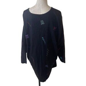 Cristina Maxx Vintage 90s Womens Sweater Skirt Set Size XL Black Cardigan V Neck