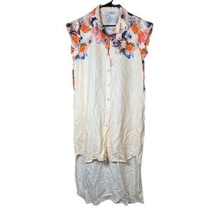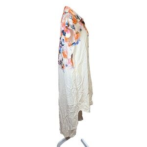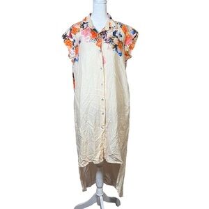 Cristina Vergani Italy Linen Hi-Low Floral Shirt Dress Button-Up Boho Midi Sz L