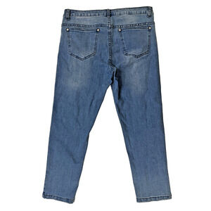 Deadstock Y2K Jeans - Cristina Jeans Womens 12 Blue Embellished Paisley Straight Leg Denim Rhinestone