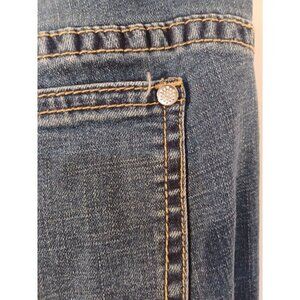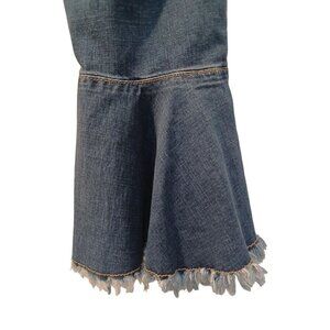 Christian's Cristina Ruffle Flare Leg Cropped Jeans in size 4 are perfect for women seeking a stylish festival look. With a raw hem and vibrant blue color, these jeans guarantee a stand out appearance.