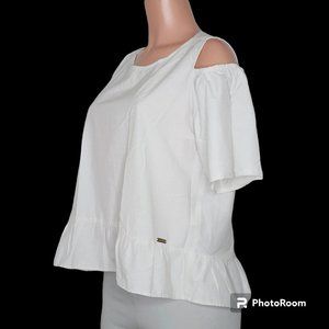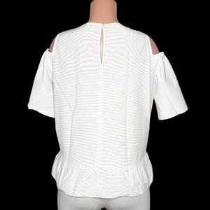 Cristinaeffe Striped Cold Shoulder Blouse Top US 6 IT 42 White Black Peplum