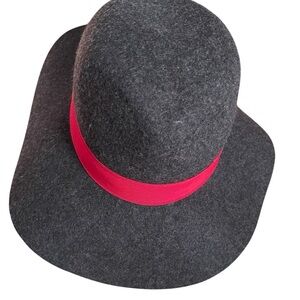 This stylish gray hat features a striking red band, perfect for adding a touch of elegance to any outfit. Ideal for any occasion.