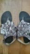Flat sandals in New condition. Metallic ruffled thong sandals made in Brazil. Slight gold sheen. Buckle. Size 7.5