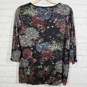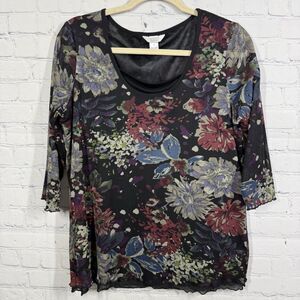 Cristopher & Banks Blouse Women XL Whimsigoth Sheer Lined V Neck 3/4 Sleeve Top