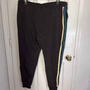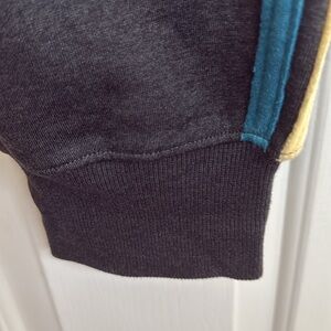 These sweatpants combine a sporty design with comfort, featuring a charcoal gray base accented by a vibrant yellow & teal detail. The jogger style is enhanced by elastic cuffs, making them perfect for casual outings or athletic activities.
