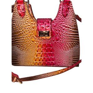 Croc Embossed Faux Leather Handbag Gradient Pink & Yellow Adjustable Strap