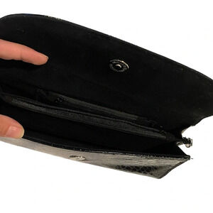 New Black Croc Embossed Flap Baguette Bag 9 1/2” long, 4” deep