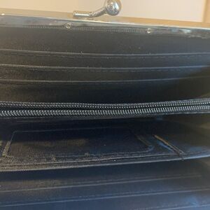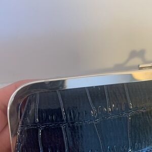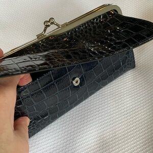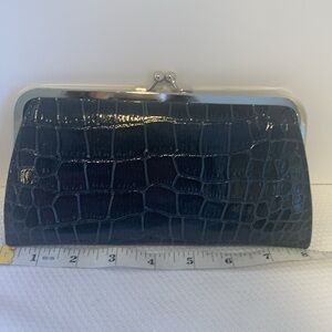 Croc Embossed Patent Leather Kiss Lock Clutch Wallet Small Handbag Black
