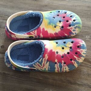 Croc classic fur lined tie dye clogs Sz W 11 M 9