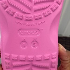 Crocs sandals, women’s size 5 in good preowned condition. The color is pink.