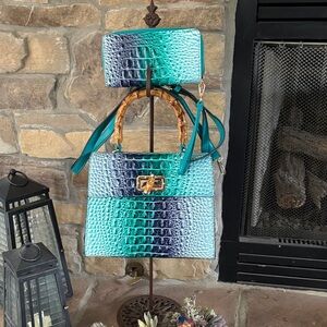 Croc-Embossed Bamboo Handle Satchel + Matching Wallet – New Without Tags