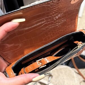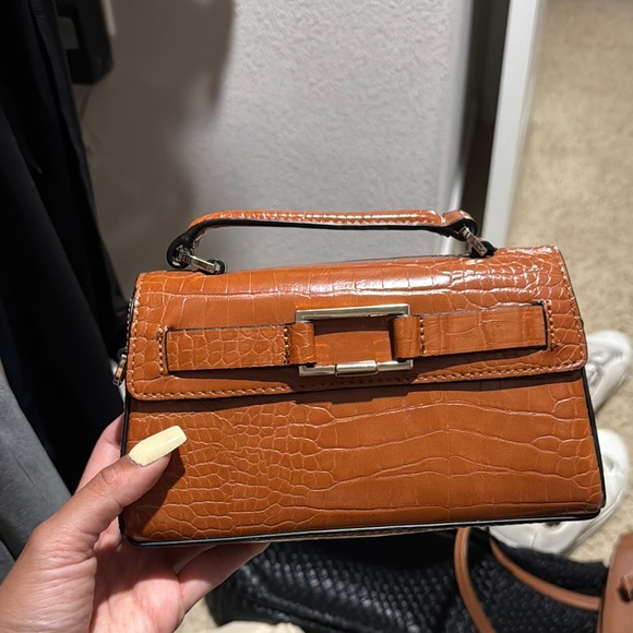 Zara purse! Elevate your style with this chic croc-embossed tan handbag. Perfect for any occasion, this bag combines elegance with functionality.