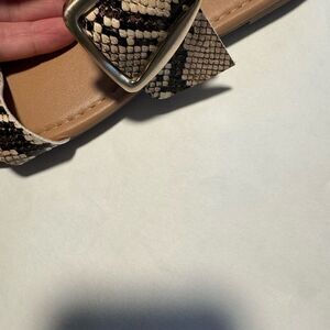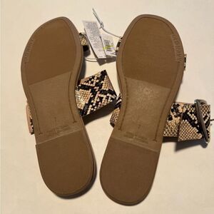 This is new with tags. Medium width. All man made. The color is tan. Comfort soles.