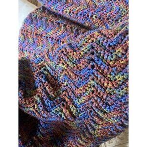 Crochet Afghan Throw Blanket Tight Knit Large Mixed Blue And Purple Handmade