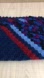 Crochet Afghan Throw Cover Square Blanket. The blanket is pre-owned and in good condition. Please see photos for visible condition. Color is blue with maroon/redish/light blue and purple/black/fuchsia accents. Approximately 46 x 48 inches square. There are a few visible yarn tie end threads visible- see photo - but no noticeable snags. I like the design of this throw cover and it's the perfect size when falling asleep in the chair LOL. No brand and age unknown. Doesn't look used much at all.