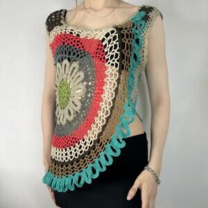 Crochet Asymmetrical See Though Tank Top Multi-Color Boho Beachy S/M