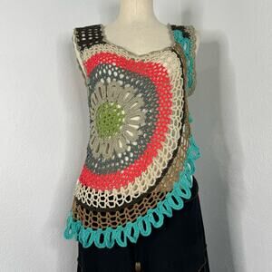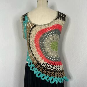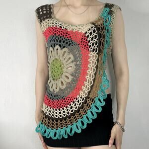 Crochet Asymmetrical See Though Tank Top Multi-Color Boho Beachy, No Size Tag Fits like a S/M, Good Condition