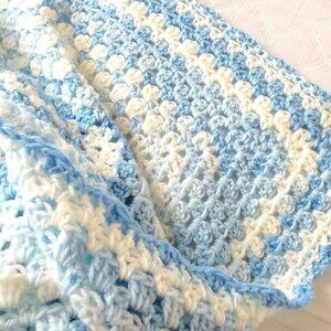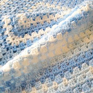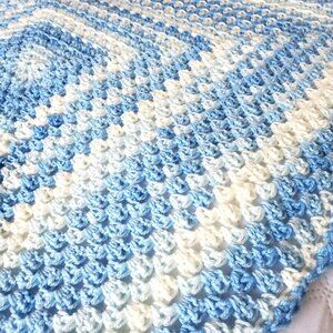 Crochet BABY BLANKET AFGHAN Granny Square 30"x 30" Blue White Girl Boy Girl