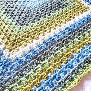 Crochet BABY BLANKET AFGHAN Lap Granny Square 29"x 29" Blue White Green New