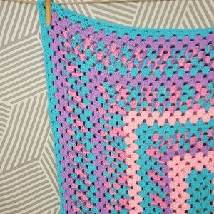 Crochet Baby Afghan Purple Pink Blue Handmade Nursery Crib Blanket 29”x46"