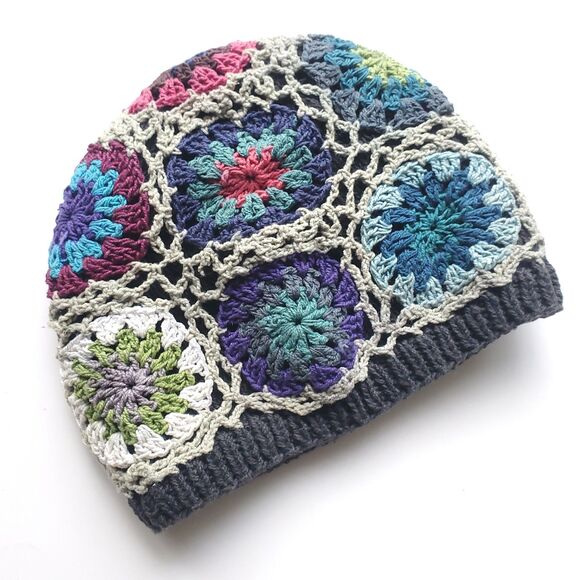Crochet Baby Hat 3-6 Month Beanie Handmade Nepal Granny Circles Boho Cottagecore