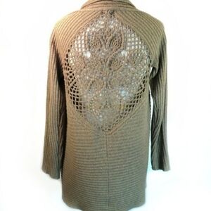 Crochet Back Wool Blend Long Cardigan