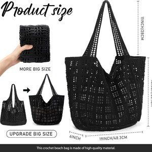 Features: This lightweight, durable crochet tote is perfect for relaxing days at the beach or casual outings. It has a mesh design that easily sheds sand, and its roomy interior can fit an iPad, wallet, magazine, sunglasses, umbrella, and more. The sturdy stitching and cute boho vibe make it both practical and eye-catching.