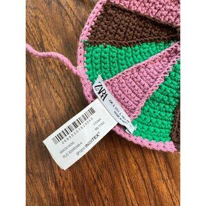 Crochet Bikini shirt Top With Tri-Color Design Purple Green & Brown Zara Sz Sm