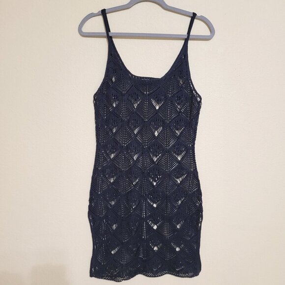 Crochet Black Sleeveless Dress Dark Cottagecore Beachy Fairy Grunge Sz S