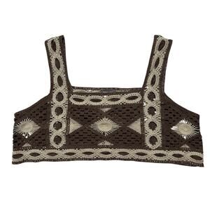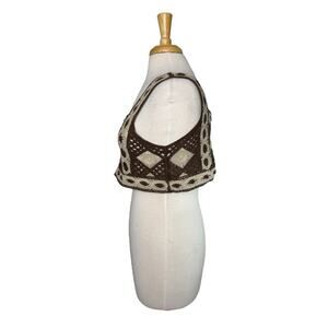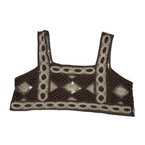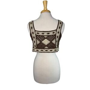 Crochet Boho Crop Top Brown & Cream Size Large Women’s SANS SOUCI Cotton Blend