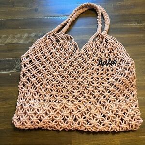 Crochet Boho Tote Handbag Rose Blush Pink Mauve Fringe Babe Reversible
