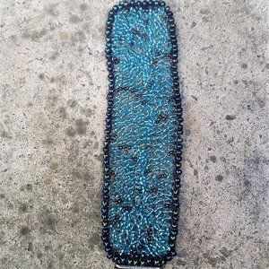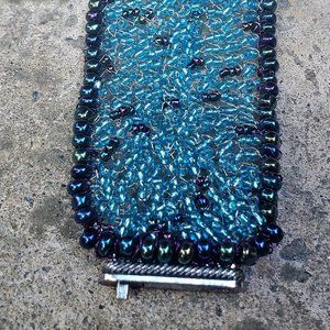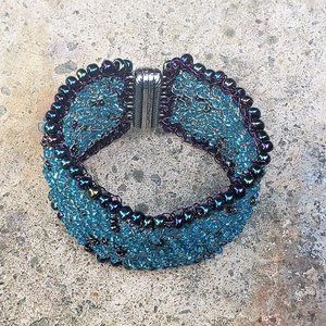 Beautiful glass and metal crochet bracelet with a strong magnetic bar clasp.
