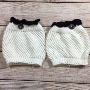 Crochet Button Boot Cuff Toppers. In great condition. Ivory off white with black on top with cute little button.