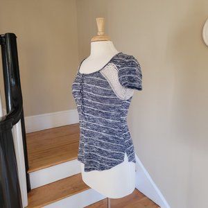 Crochet Detailed Short Sleeve Top By paper + tee. Size M