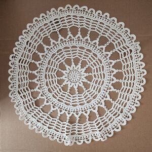 Crochet Doily White Cotton Round Handmade 22" Table Centerpiece Romantic Retro