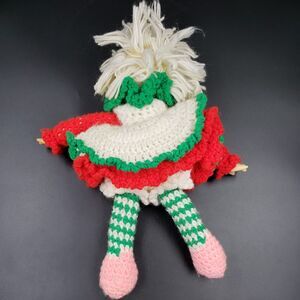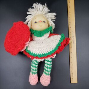Crochet Doll 70s Retro Handmade Girl Christmas Gift Vtg Cottage Bedroom Decor