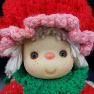 Vintage Handmade Crochet Doll Bed Sitter. Likeness of Strawberry Shortcake.