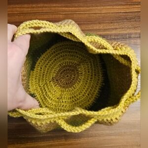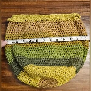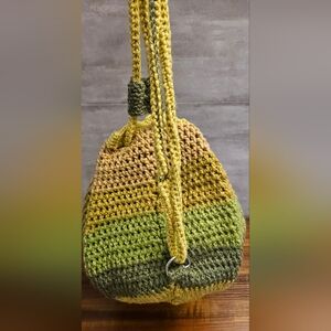 Crochet Drawstring Backpack - Green & Tan