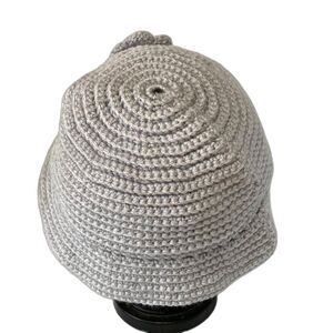 Crochet Foldable Bucket Hat Gray with Flower Womens Small