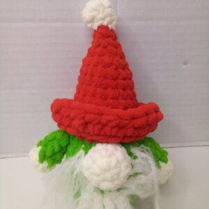 Crochet Gnome Elf Christmas Red Green 8" Handmade