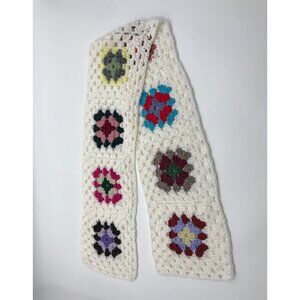 Crochet Granny Scarf Runner Handmade Ivory Multi-Color